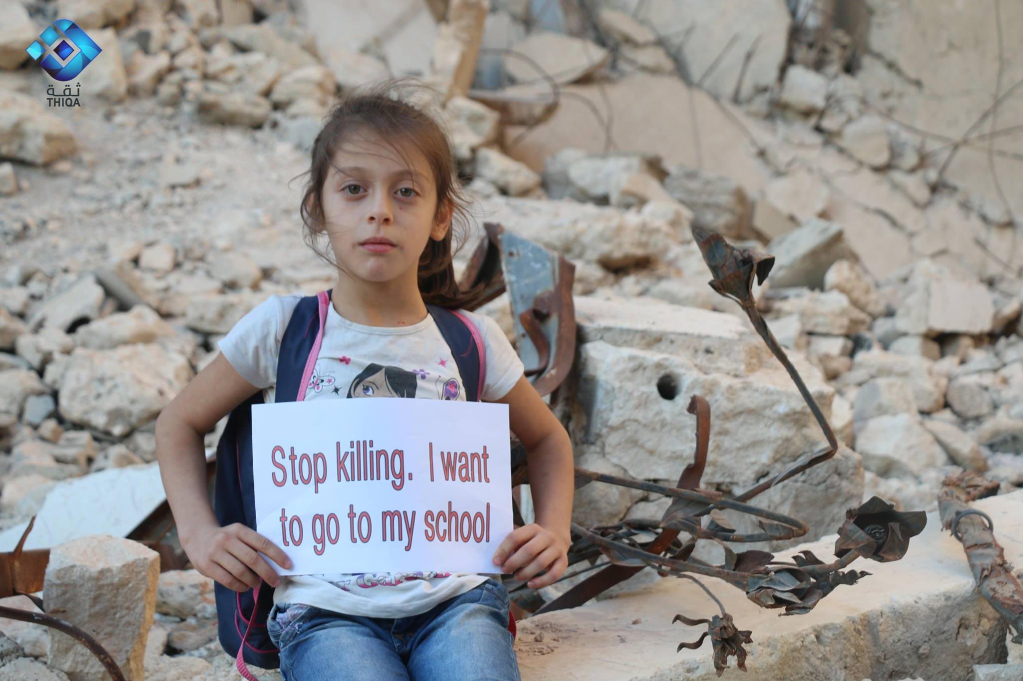 اوقفوا القصف أريد الذهاب الى مدرستي
