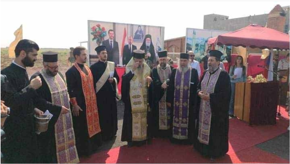 بحضور روسي، شبيح يضع حجر أساس لبناء كنيسة “آيا صوفيا” بحماة بحجم لا يتجاوز خمسة أمتار !!