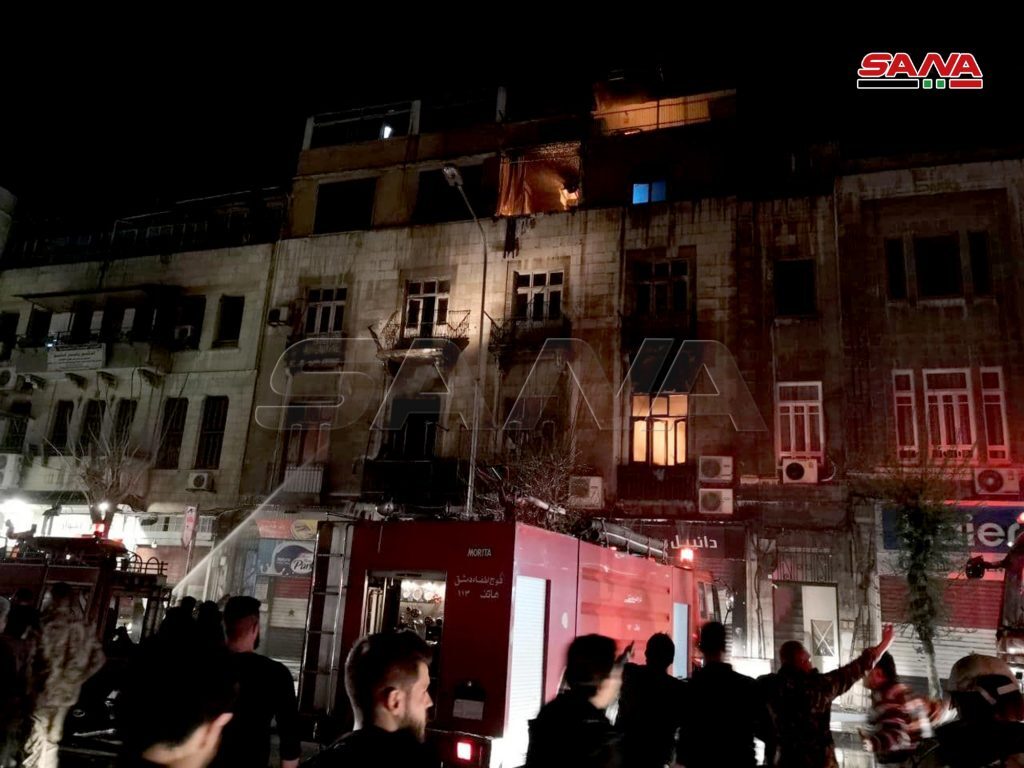 ووفقاً لوكالة أنباء النظام “سانا”، فإن حريق اندلع في مبنى سكني مؤلف من أربعة طوابق بشارع الباكستان في ساحة السبع بحرات بدمشق، ناتج عن احتراق أحد خزانات الوقود على سطح البناء.