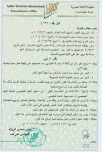 يشار إلى أن حكومة الإنقاذ السورية؛ هي في الواقع حكومة بديلة تتبع المعارضة السورية، وتجلس في محافظة إدلب. لقد اختتم المؤتمر العام في 11 سبتمبر 2017 وكوَّن جمعية تأسيسية، وعين رئيسًا جديدًا للوزراء. وفي مطلع أكتوبر 2017، شكل المؤتمر العام حكومة الإنقاذ الحالية.
