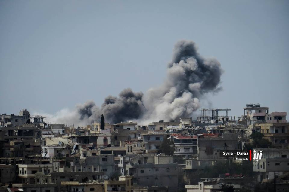 قصف عنيف على أحياء درعا بالبراميل المتفجرة والنابالم