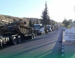 وكانت انتشرت على وسائل التواصل الاجتماعي صوراً ومقاطع فيديو للأرتال العسكرية آنفة الذكر، والتي تظهر عشرات الآليات المحملة بالدبابات والعناصر.