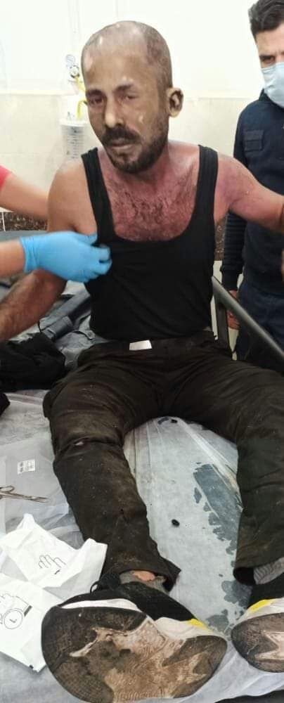 ونشر ناشطون صورا للرجل “أحمد الزيبق” وهو داخل أحد المستشفيات أثناء تلقيه الإسعافات الأولية.