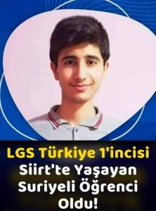 وقد حقق الطالب السوري “دليار صافو” المركز الأول على مستوى تركيا في امتحان دخول الثانوية التركي LGS وفقاً لوسائل إعلام تركية.