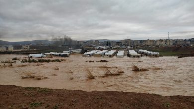 أمطار غزيرة بالشمال السوري ..وفيضان يضرب مخيم للنازحين بمدينة عفرين شمال حلب .