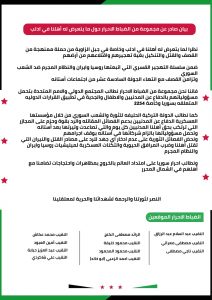 وبناء على ذلك، أصـ.ـدر مجموعة من الضباط الأحـ.ـرار بيانا طالبوا من خلاله، المجتمع الدولي والأمم المتحدة بتحمل مسؤولياتهم بالدفـ.ـاع عن المدنيين والأطفال والجدية في تطبيق القرارات الدولية المتعلقة بسوريا وخاصة قرار رقم 2254.